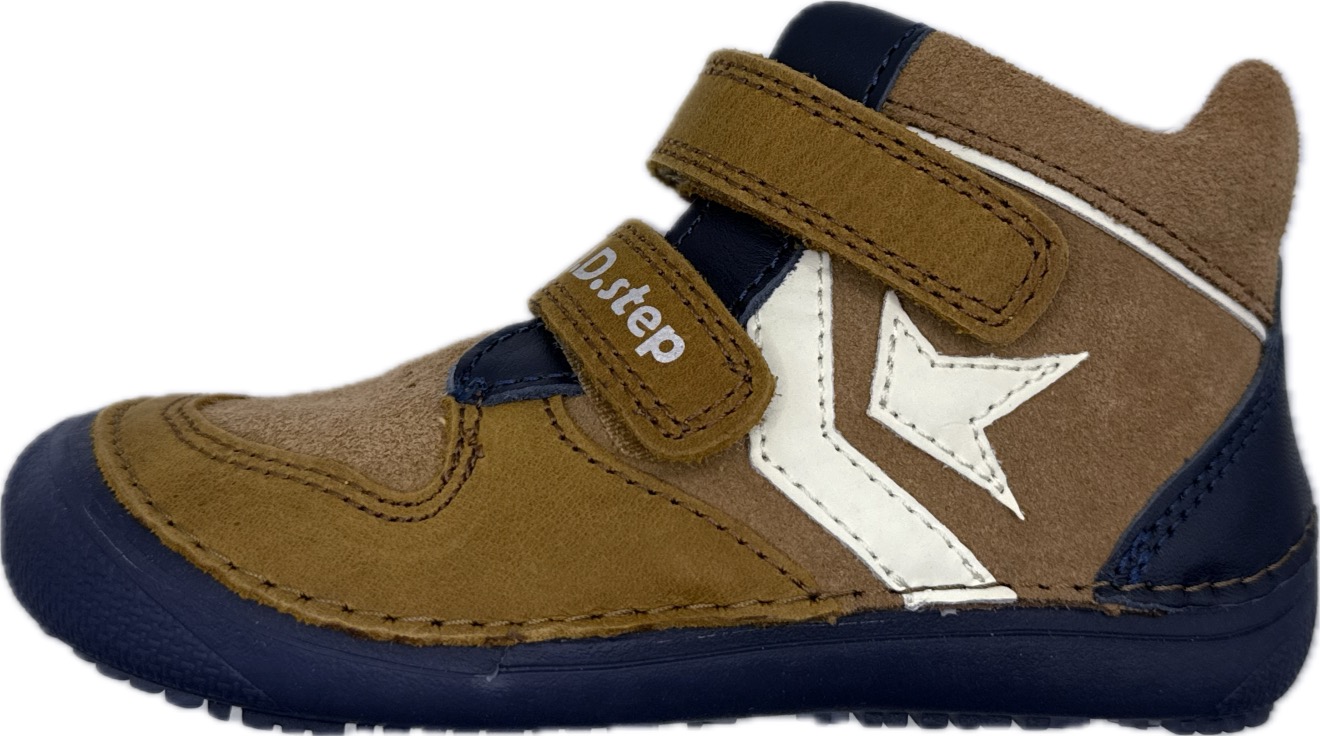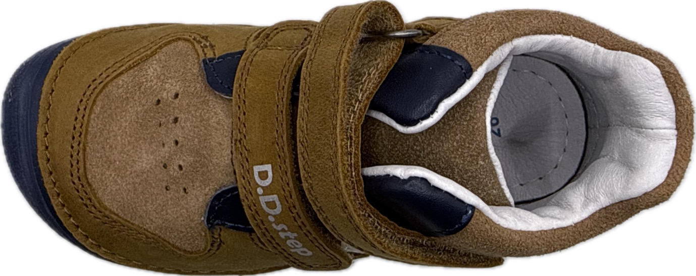 Celoroční kožená obuv značky D.D.Step na dva suché zipy. Maximálně flexibilní podešev. Uvnitř boty se nachází kožená, netvarovaná, vyjímatelná stélka. Nezpevněný opatek.