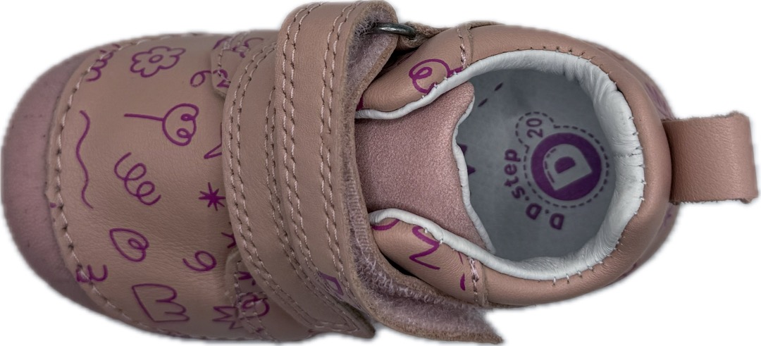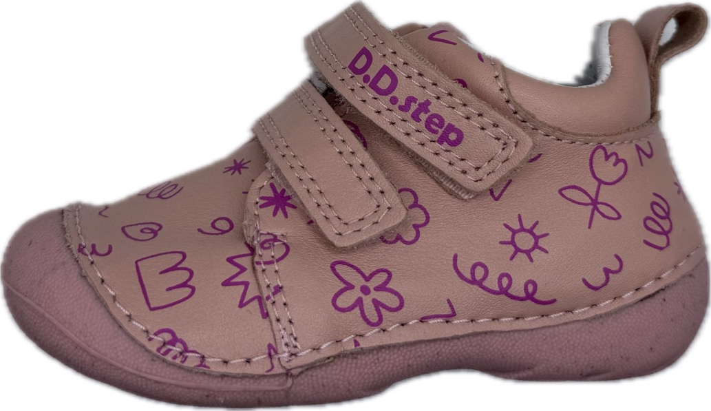 Celoroční vycházková kožená obuv značky D.D. Step na 2 suché zipy. Podešev boty je maximálně flexibilní a prostorná špice zajistí dostatek místa na prsty. Uvnitř boty se nachází kožená podšívka a vyjímatelná tvarovaná stélka. Zvýšená gumová špice chrání před okopáním. Zpevněný opatek.
