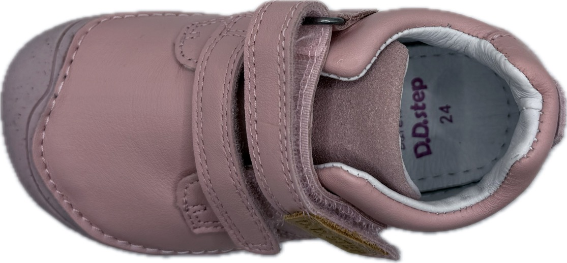 Celoroční vycházková kožená obuv značky D.D. Step na 2 suché zipy. Podešev boty je maximálně flexibilní a prostorná špice respektující dominantní palec zajistí dostatek místa na prsty. Uvnitř boty se nachází kožená vyjímatelná netvarovaná stélka. Zvýšená gumová špice chrání před okopáním. Nezpevněný opatek, BAREFOOT model.