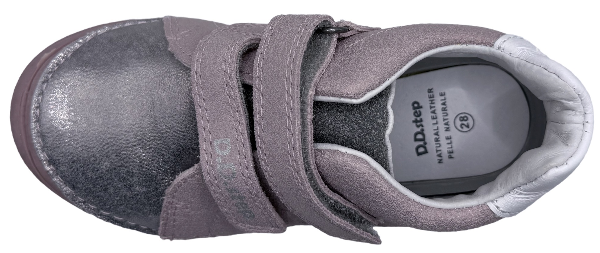 Celoroční vycházková kožená obuv značky D.D. Step na 2 suché zipy. Podešev boty je velmi flexibilní a prostorná kulatá špička zajistí dostatek místa na prsty. Uvnitř boty se nachází kožená vyjímatelná stélka. Zvýšená gumová špice chrání před okopáním. Pevný opatek.