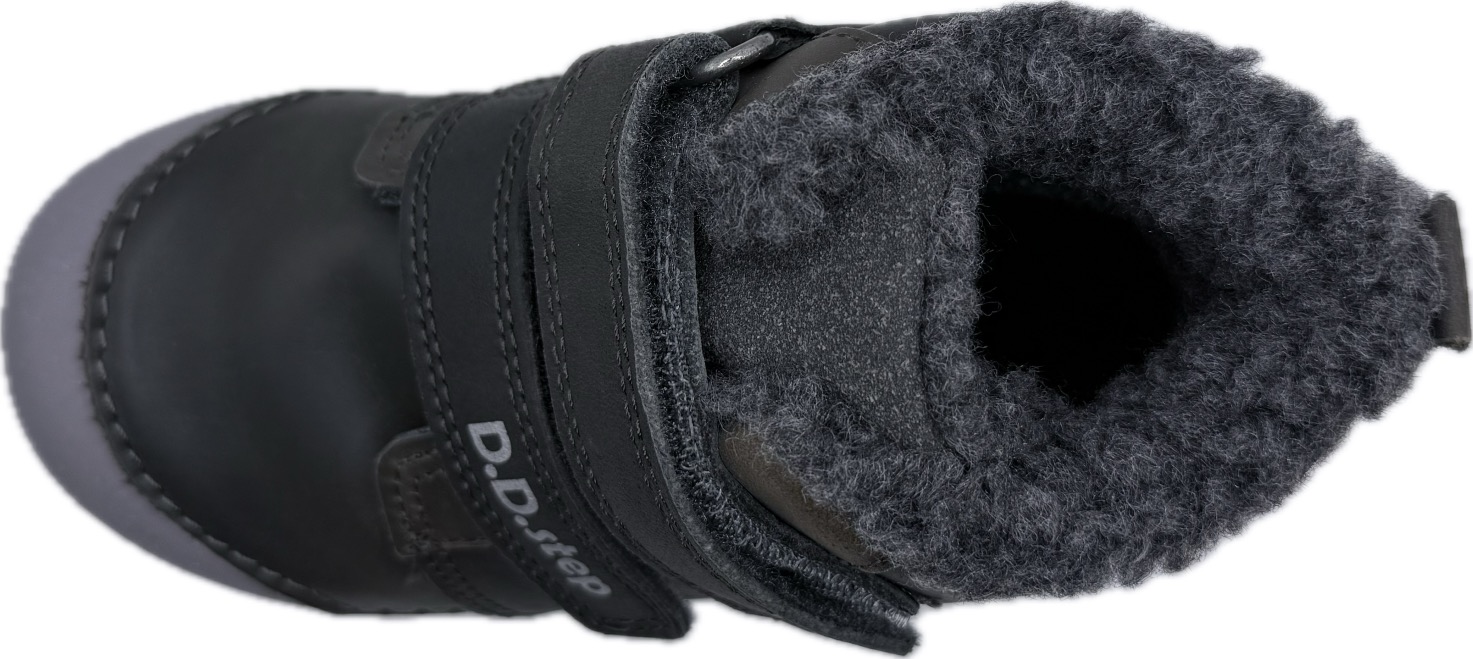 Zimní kožená obuv značky D.D.Step na 2 suché zipy. Uvnitř boty se nachází zateplená vyjímatelná stélka. Dle výrobce kožíšek obsahuje 60% ovčí vlny. Měkounká podešev, zpevněný opatek.
