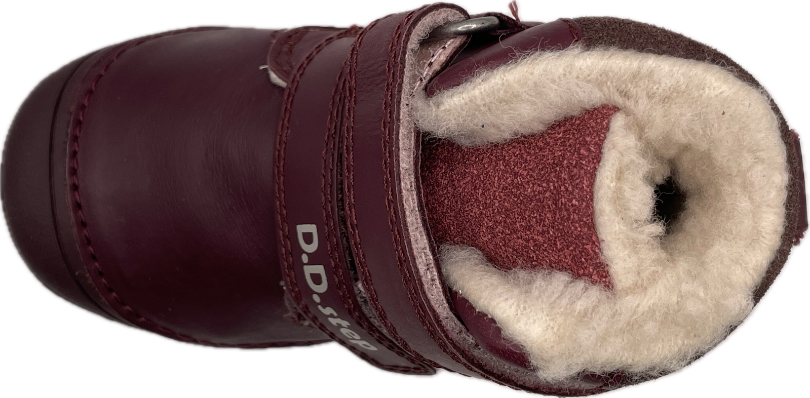 Zimní kotníková kožená obuv se zapínáním na dva suché zipy. Vnitřek je zateplený kožíškem, který dle výrobce obsahuje 60% ovčí vlny. Uvnitř boty se nachází vyndavací, zateplená stélka s lehkou podporou klenby. Flexibilní podešev s prostornou špičkou, která zajišťuje dostatečný prostor pro prsty.