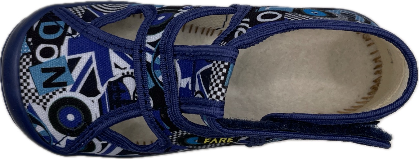 Přezůvková, kotníčková, textilní, lemovaná obuv, na suchý. zip. Materiál svršku je z barevného pracího kordu, vnitřek je z bavlněného kepru. Podešev je vyvinuta jako odlehčená, materiál podešve z termoplastického elastomeru, je neklouzavá pro všechny běžně používané podlahoviny. Tato domácí a přezůvková obuv odpovídá ortopedickým požadavkům a zásadám zdravého obouvání. Obuv je v prstové části prostorově vytvarována, je vybavena pevným opatkem tak, jako je běžné u kvalitní celokožené obuvi. Vkládací stélka je vybavena komfortní tlumící vrstvou. Obuv je designována v souladu nejmodernějšími módními trendy, včetně podešve, která chrání přední část před rychlým opotřebením.