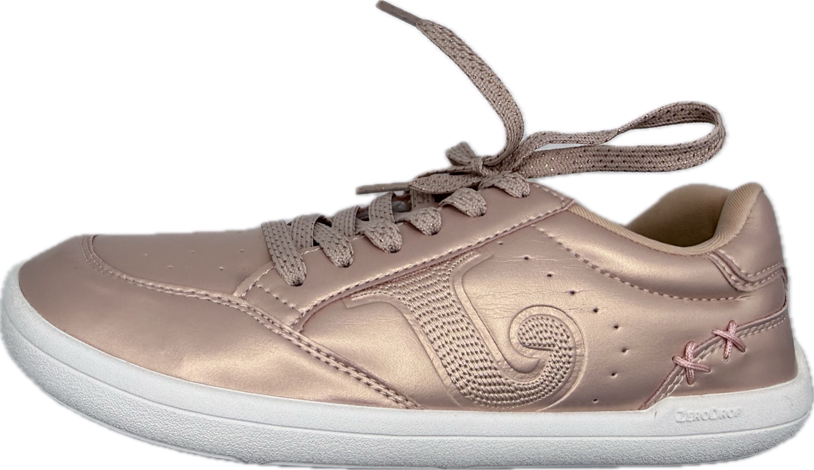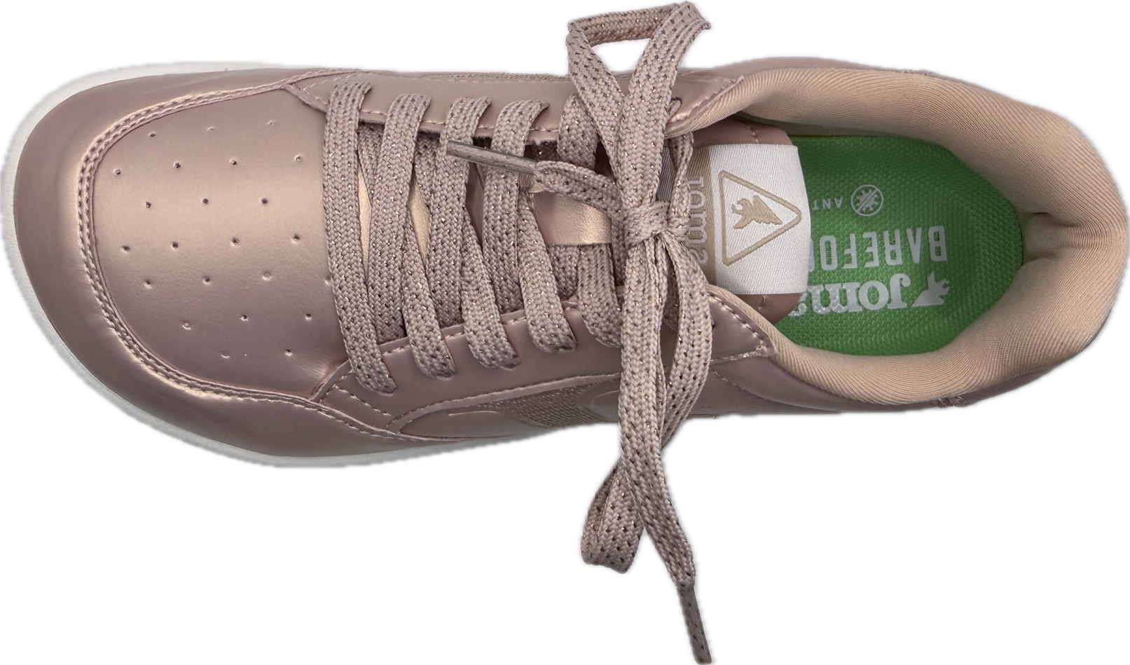 Dětské celoroční vycházkové barefoot boty Joma jsou pohodlné tenisky pro každodenní nošení. Jemný růžovo-zlatý design, flexibilní nebarvící podrážka a šněrování drží nohu jistě při každém kroku. Nezpevněný opatek, vyjímatelná stélka z paměťové pěny. Nulový drop.