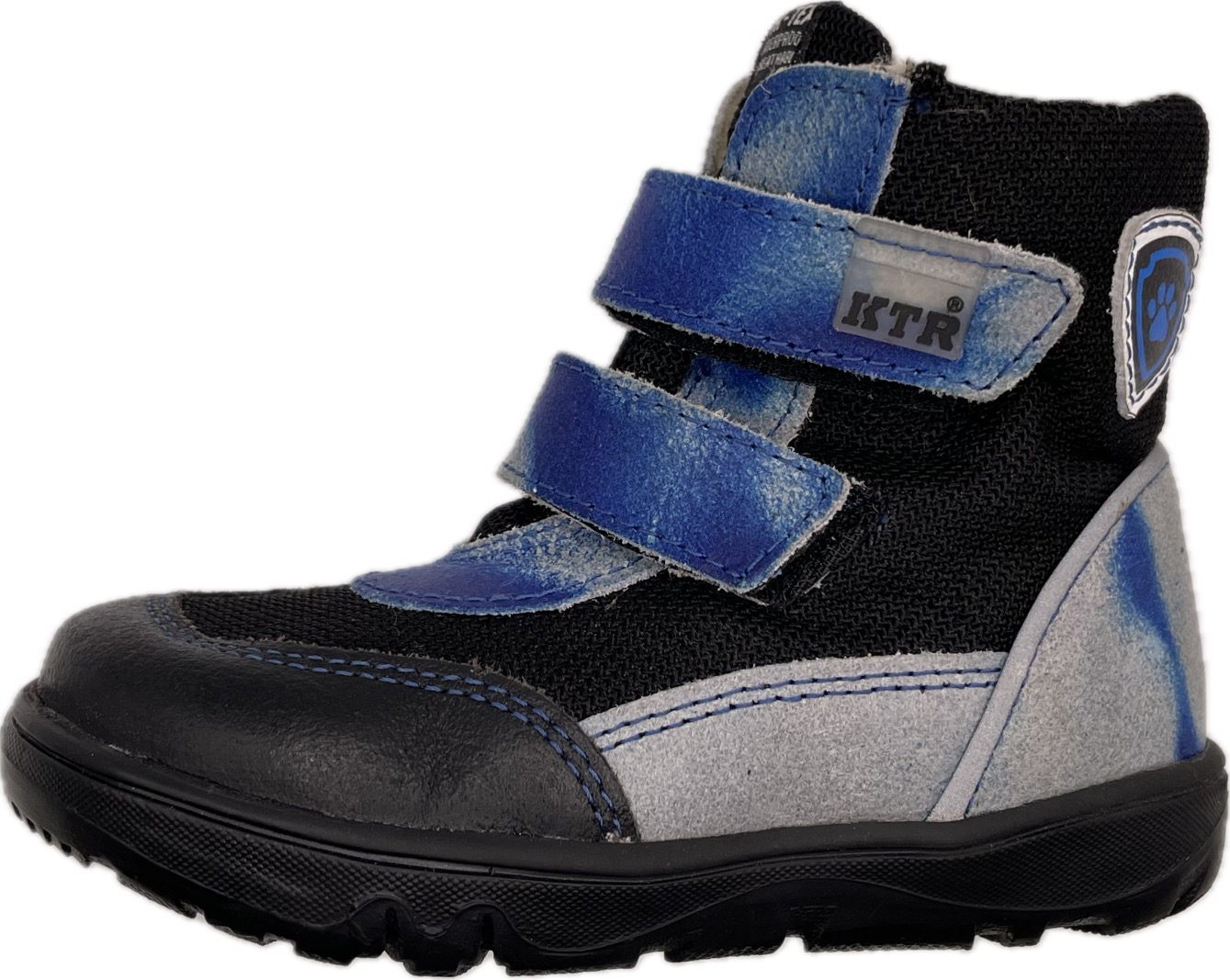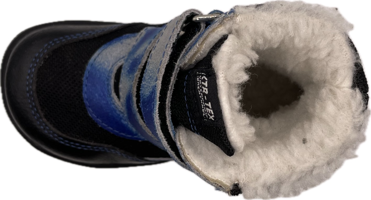 Parádní zimní obuv českého výrobce KTR je vyrobena v kombinaci kůže a textilu a vybavena voděodolnou membránou. Uvnitř boty se nachází hřejivý kožíšek tvořený dle výrobce z 80% ovčí vlnou. Zvýšená ochrana proti okopu, kolem špice navíc vrstva voděodpudivého pampasu. Široká špice barefootového tvaru respektuje dominantní palec. Pevný opatek.