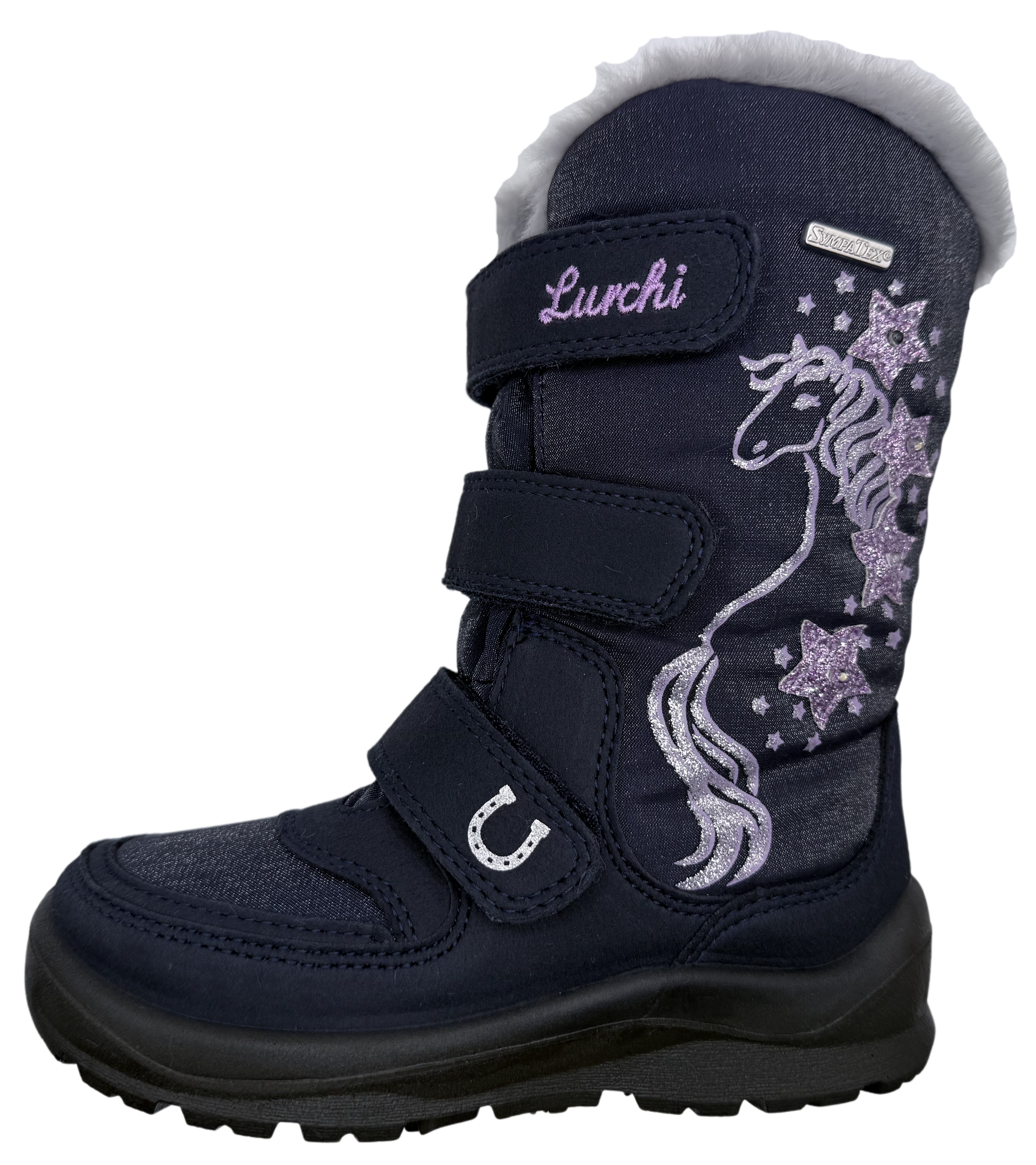 Dětské zimní boty Lurchi s voděodolnou membránou Sympatex udrží nožičky Vašeho dítěte v suchu a teple i při teplotách pod nulou. Zapínání na 3 suché zipy. Uvnitř zateplené textilním kožíškem.