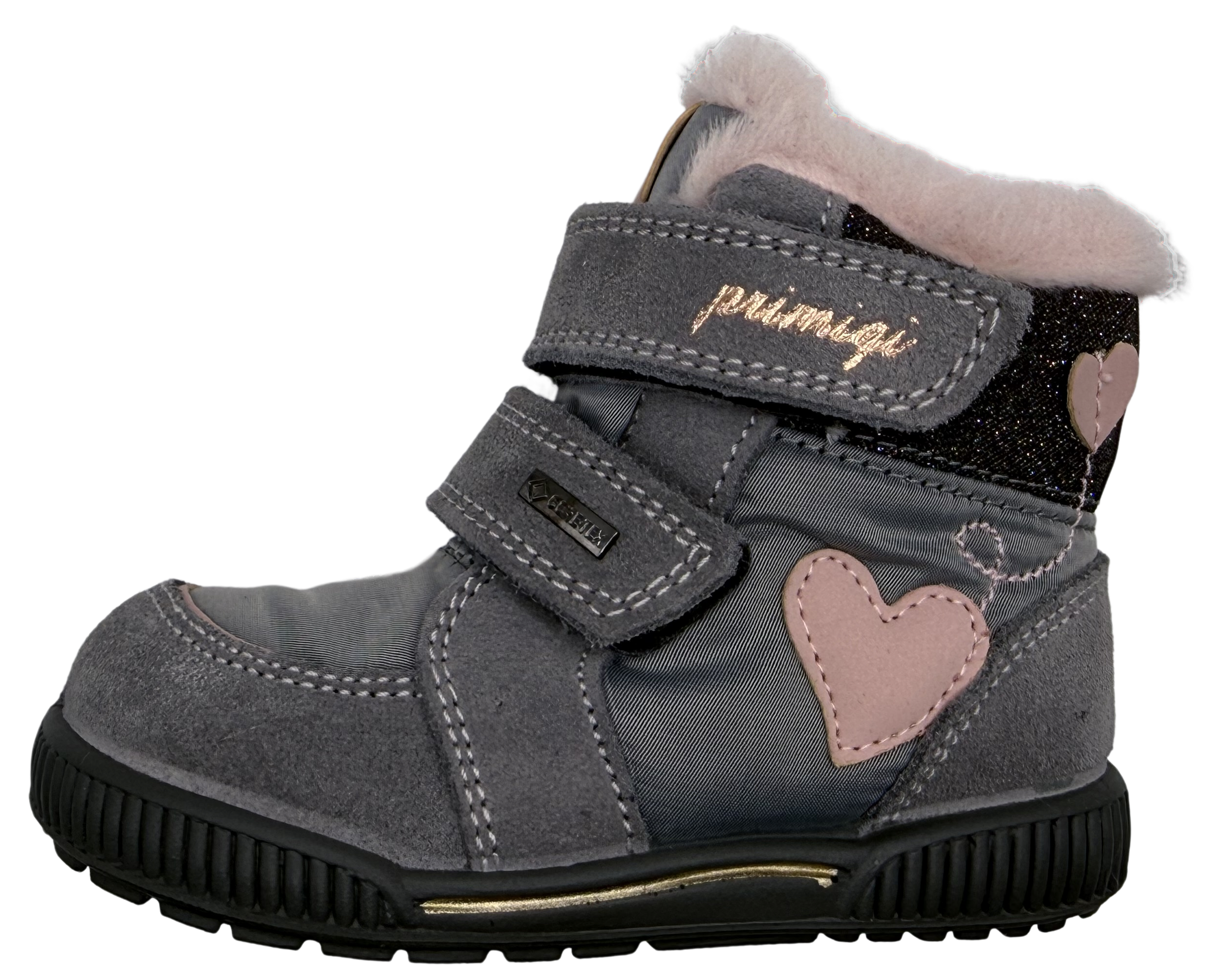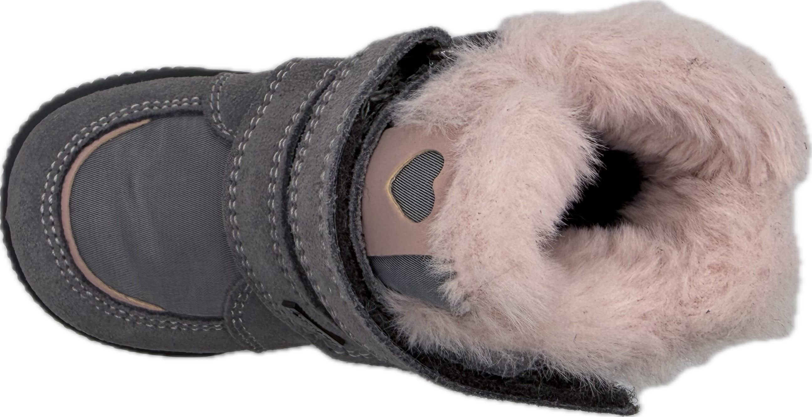 Svršek tvořen kombinací kůže/textil, uvnitř teplý textilní kožíšek. Ohebná neklouzavá podešev s výrazným vzorkem pro bezpečnou chůzi po klouzavém povrchu. Zapínání na 2 suché zipy. Zpevněný opatek.