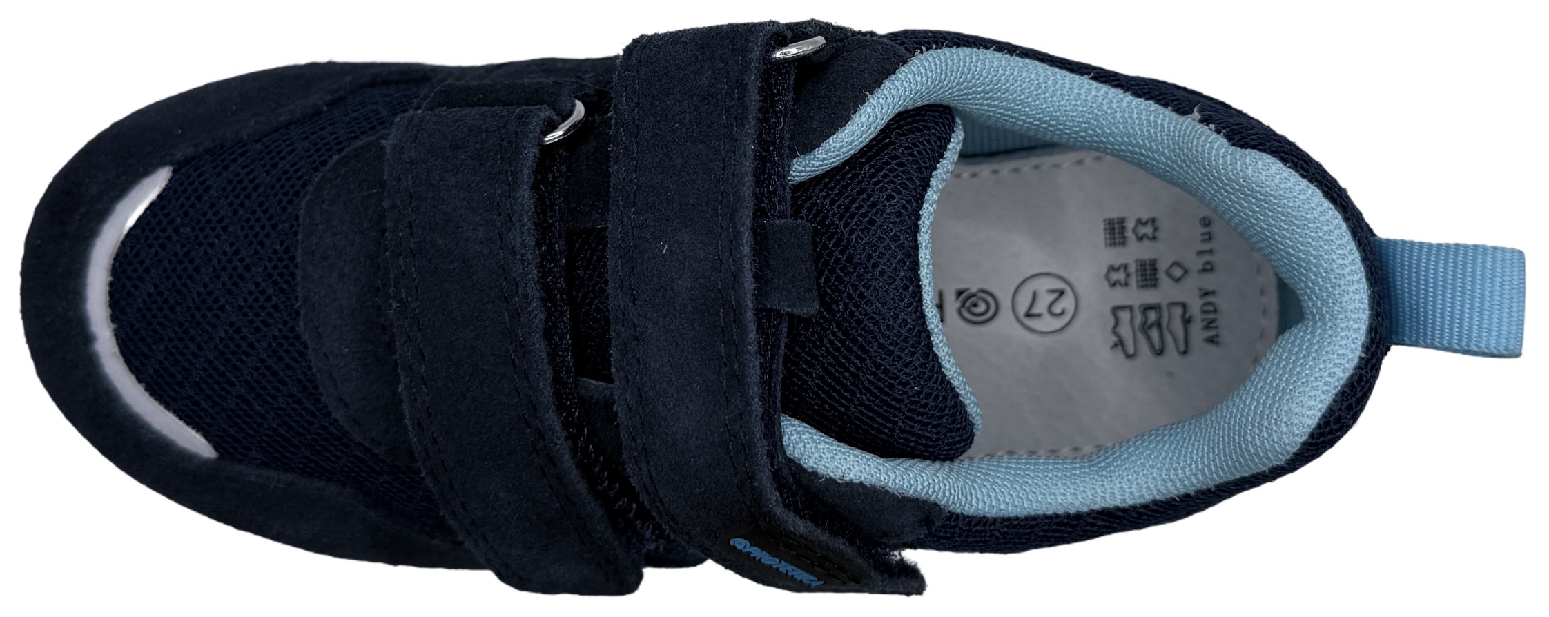 Lehoučké sportovní boty jsou vyrobeny v kombinaci kůže a kvalitního textilu. Nad opatkem mají měkký límeček. Zapínání na 2 suché zipy, uvnitř vyjímatelná kožená stélka s jemnou podporou klenby. Speciální protiskluzová podešev je zvýšena a má výborné tlumící vlastnosti. Boty mají zpevněnou patu.