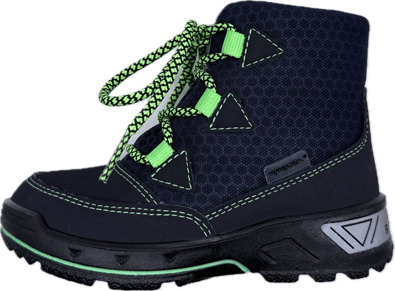 Kotníková zimní obuv německého výrobce Ricosta je ultra lehká a má ohebnou podešev. Je vybavena nepromokavým materiálem SympaTex , který chrání botu před promočením. Uvnitř je vyteplena jemným kožíškem a má vyjímatelnou stélku. Zpevněný opatek.