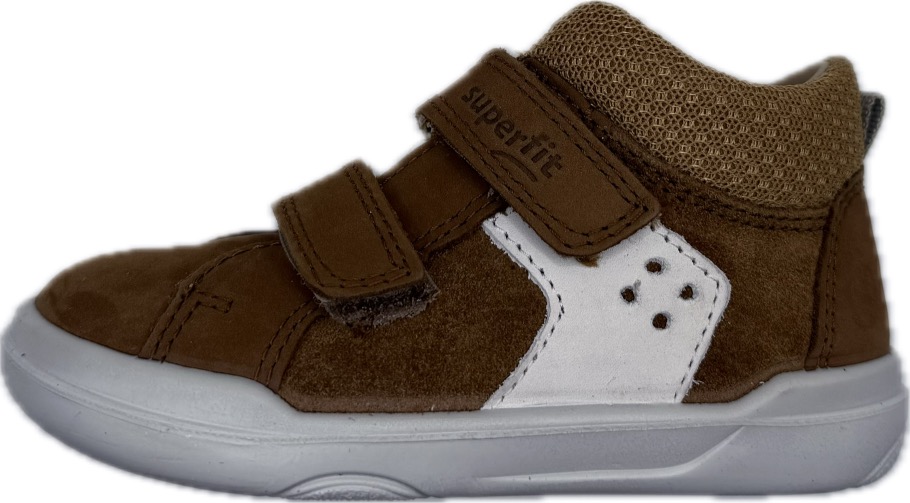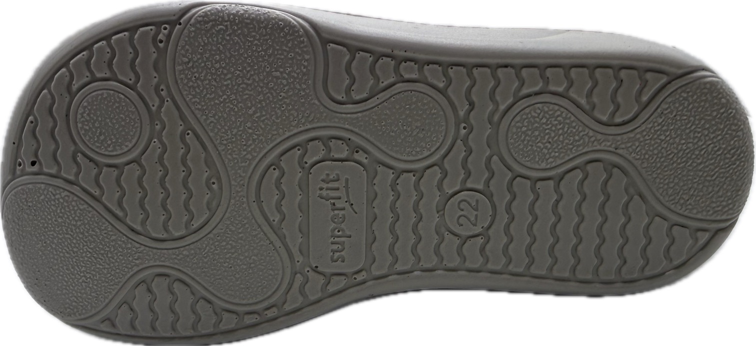 Celoroční obuv značky Superfit z nejkvalitnějšího nubuku (kůže). Uvnitř se nachází kožená, vyjímatelná stélka. Zapínání na dva suché zipy. Botička je lehoučká s extrémně ohebnou podešví. Speciální kožená podšívka a stélka uvnitř botky je testována na nepřítomnost škodlivých látek, je možné botku nosit na bosou nožičku. Velmi měkounká botička. Lehce zpevněný opatek. Výrobcem označeno jako barefoot model.