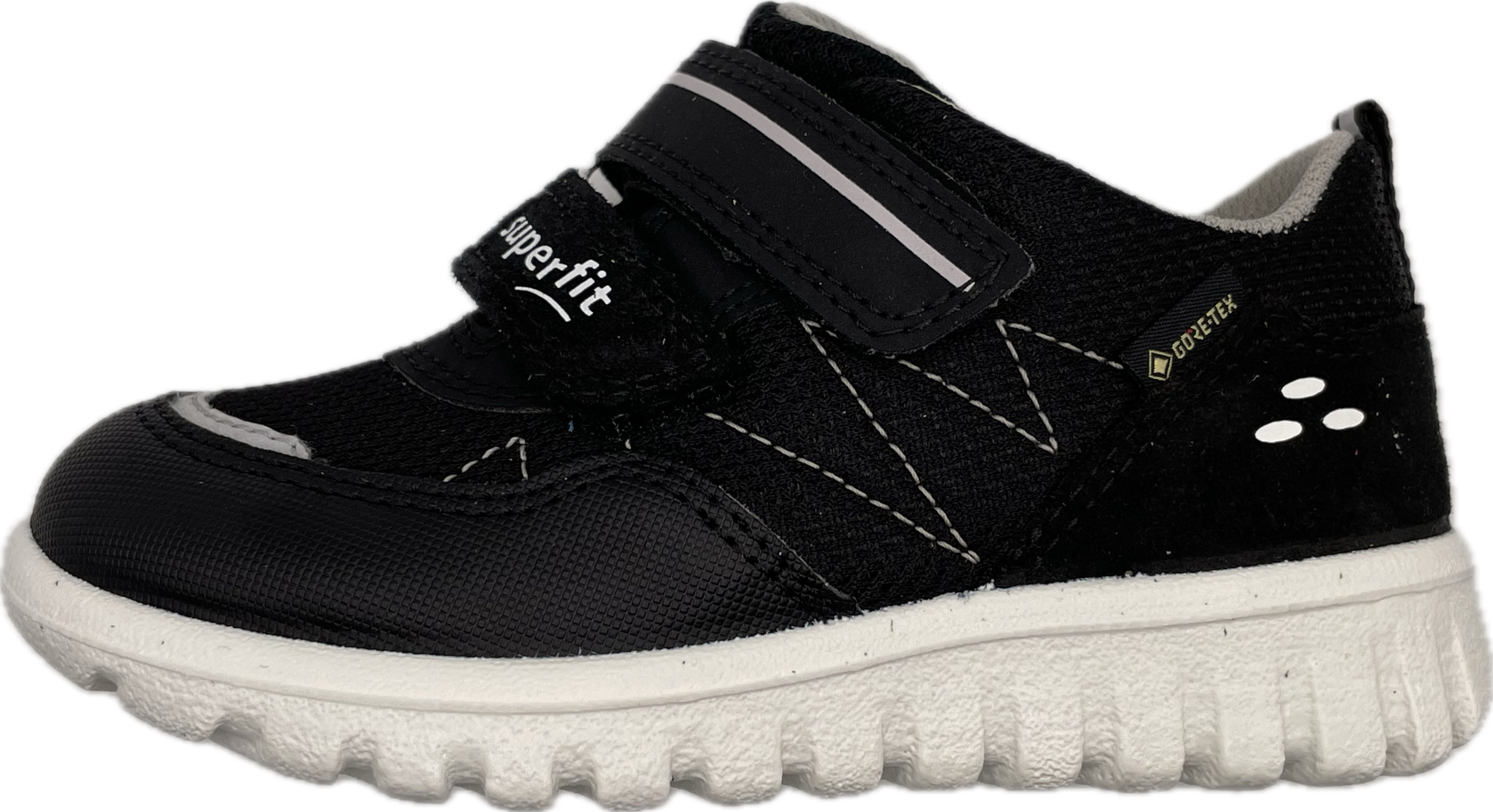 Celoroční vycházková obuv značky Superfit s voděodolnou goretexovou membránou. Uvnitř se nachází kožená, vyjímatelná stélka. Svršek v kombinaci textil/kůže/syntetika, prodyšná textilní podšívka. Zapínání na dva suché zipy. Botička je lehoučká s extrémně ohebnou podešví.