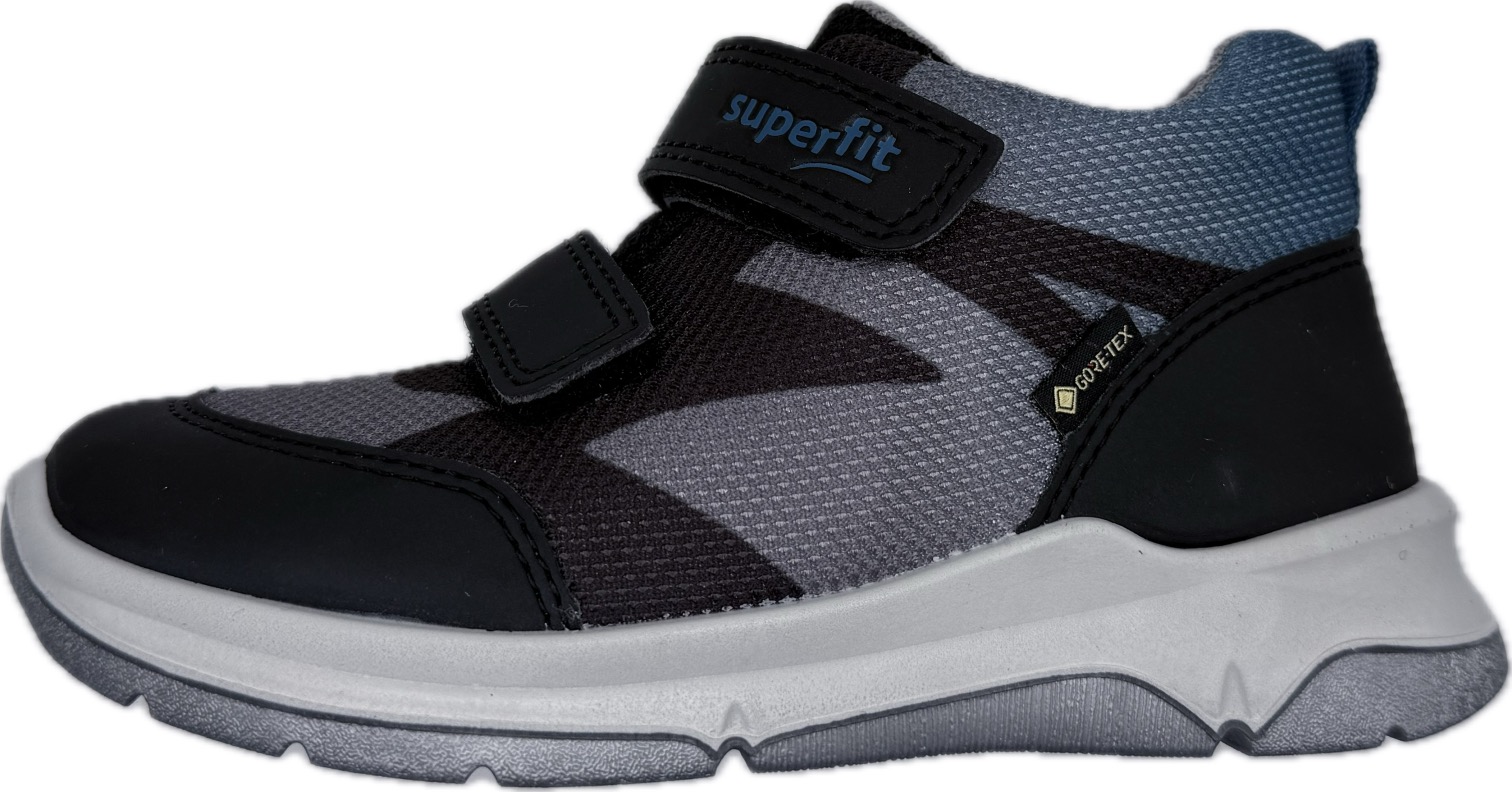 Celoroční obuv značky Superfit s pružnou podešví a voděodolnou membránou Goretex. Svršek v kombinaci textil/syntetika, podšívka textilní. Boty mají pevný opatek, jsou extrémně lehké, s maximálně ohebnou podešví a textilní vyjímatelnou stélkou. Zpevněná špice chránící okop špičky boty.