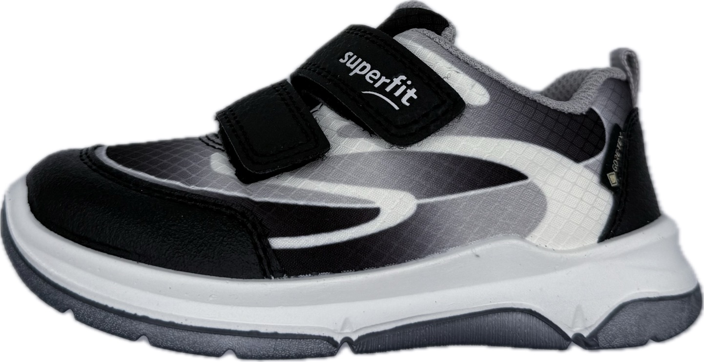 Celoroční obuv značky Superfit s pružnou podešví a voděodolnou membránou Goretex. Svršek v kombinaci textil/syntetika, podšívka textilní. Boty mají pevný opatek, jsou extrémně lehké, s maximálně ohebnou podešví a textilní vyjímatelnou stélkou. Zpevněná špice chránící okop špičky boty.