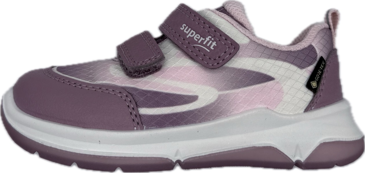 Celoroční obuv značky Superfit s pružnou podešví a voděodolnou membránou Goretex. Svršek v kombinaci textil/syntetika, podšívka textilní. Boty mají pevný opatek, jsou extrémně lehké, s maximálně ohebnou podešví a textilní vyjímatelnou stélkou. Zpevněná špice chránící okop špičky boty.