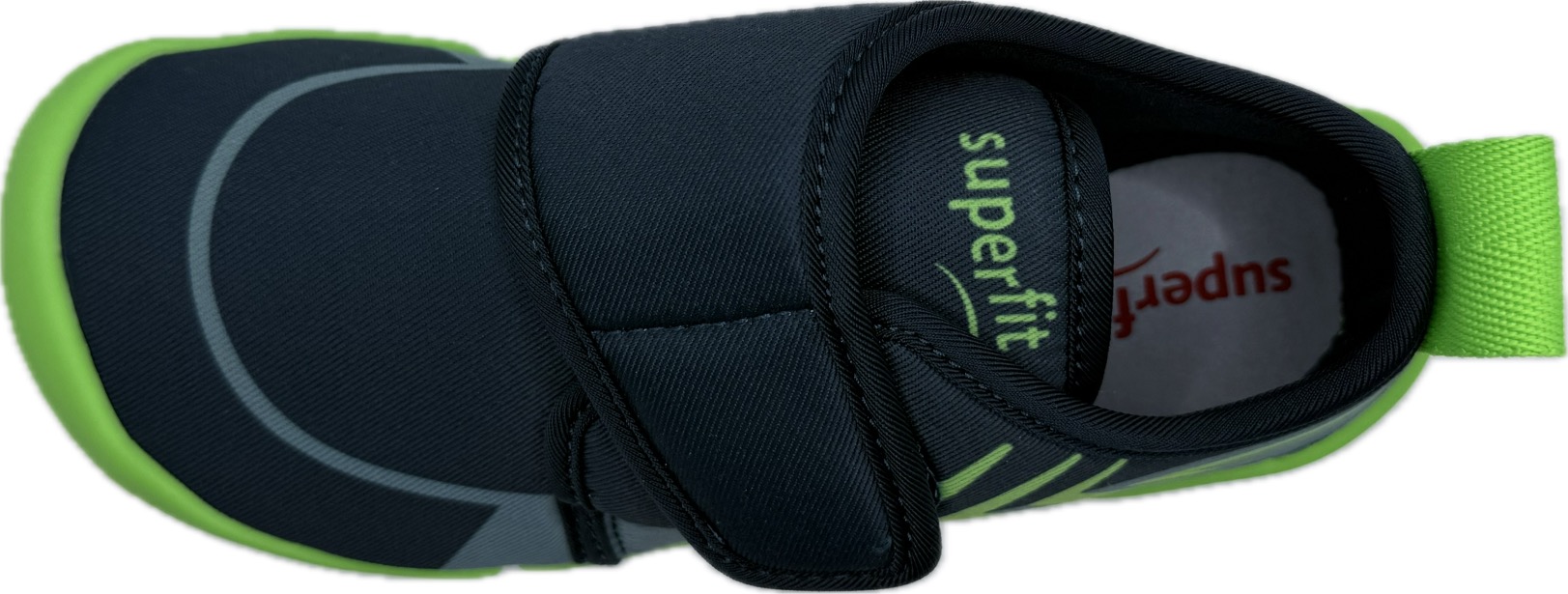 Textilní přezůvky značky Superfit s rozšířenou prstovou částí, jsou velmi lehké, obuv reguluje odvádění vlhkosti, zajišťuje výměnu vzduchu a tím i optimální vnitřní klima v botičce, zapínání na suchý zip.
