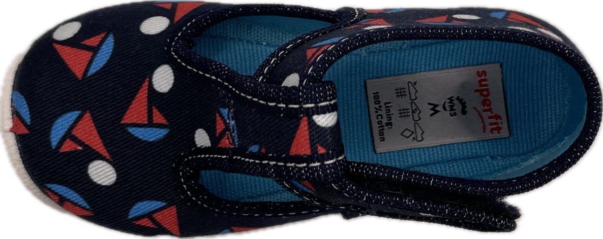 Plátěná kotníková polootevřená domácí botička na suchý zip. Má ohebnou, perforovanou podešev, která zajistí pohodlnou chůzi a lepší prodyšnost. Svršek i vnitřek boty je textilní. Nemá vyjímatelnou stélku.