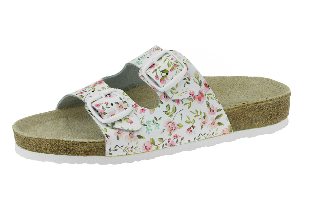 Dámské odlehčené pantofle Peon na nízkém klínku s korkovou mezipodešví a mechovkou tlumící otřesy při chůzi. Pantofle v moderním stylu se dvěma koženými pásky s kovovými sponami umožňujícími přizpůsobení velikosti. Ortopedicky tvarovaná stélka potažená přírodní kůží a odlehčená podešev odolná proti uklouznutí Vám zajistí zdravé a pohodlné obutí na doma i do práce.