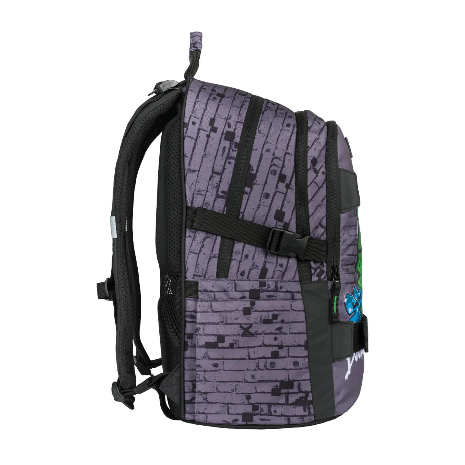 • Batoh má jako bonus kovový přívěšek ve tvaru skatu.